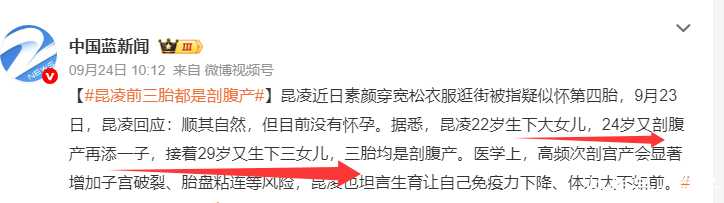 在采访中,昆凌还透露了自己生三胎宝宝都是剖腹产,虽然三个孩子分别是在她22岁、24岁和29岁生产的,中间相隔着一段时间,但仍然对于女性的身体负担很大,也可能会对她的健康有所影响。
