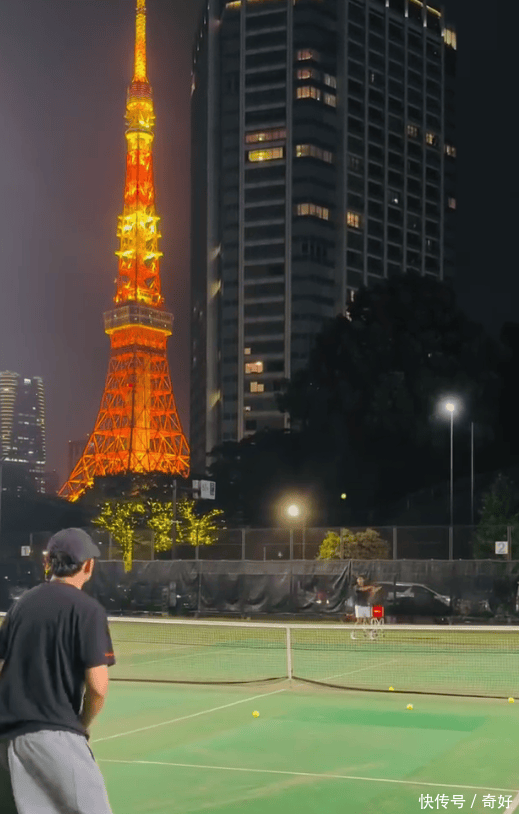 还不忘在东京塔下练网球。