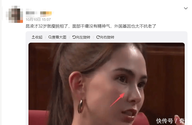 有网友认为她瘦“脱像了”,还说“外国基因太不抗老”。让对她容貌的讨论又上了一个台阶。